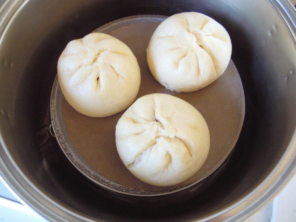 蒸し上がってすぐにふたを開けると温度差でまんじゅうがしぼむことがあるので、少し蒸らしてからふたを開けます。