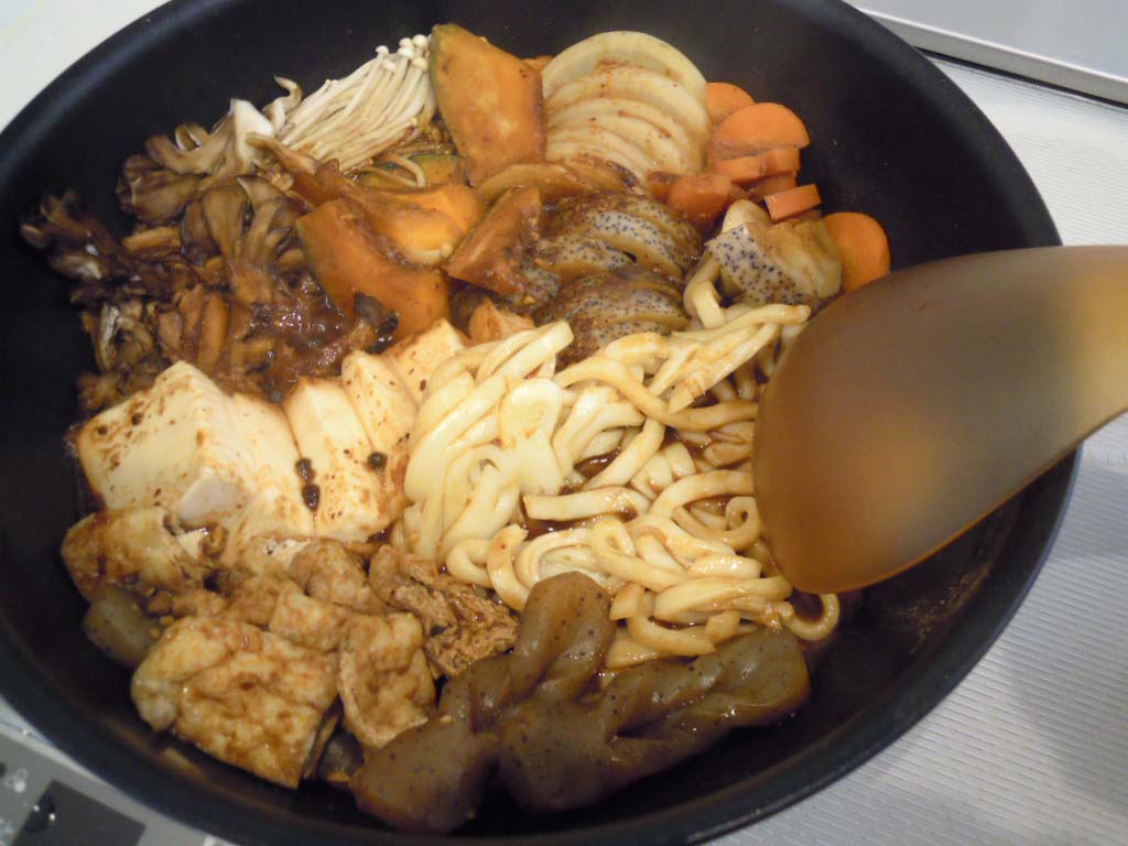 じっくり煮込んで味のしみた野菜やうどんがおいしい。