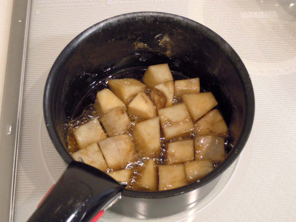 芋の粘りによって吹きこぼれしやすいので、ふたはしないこと。