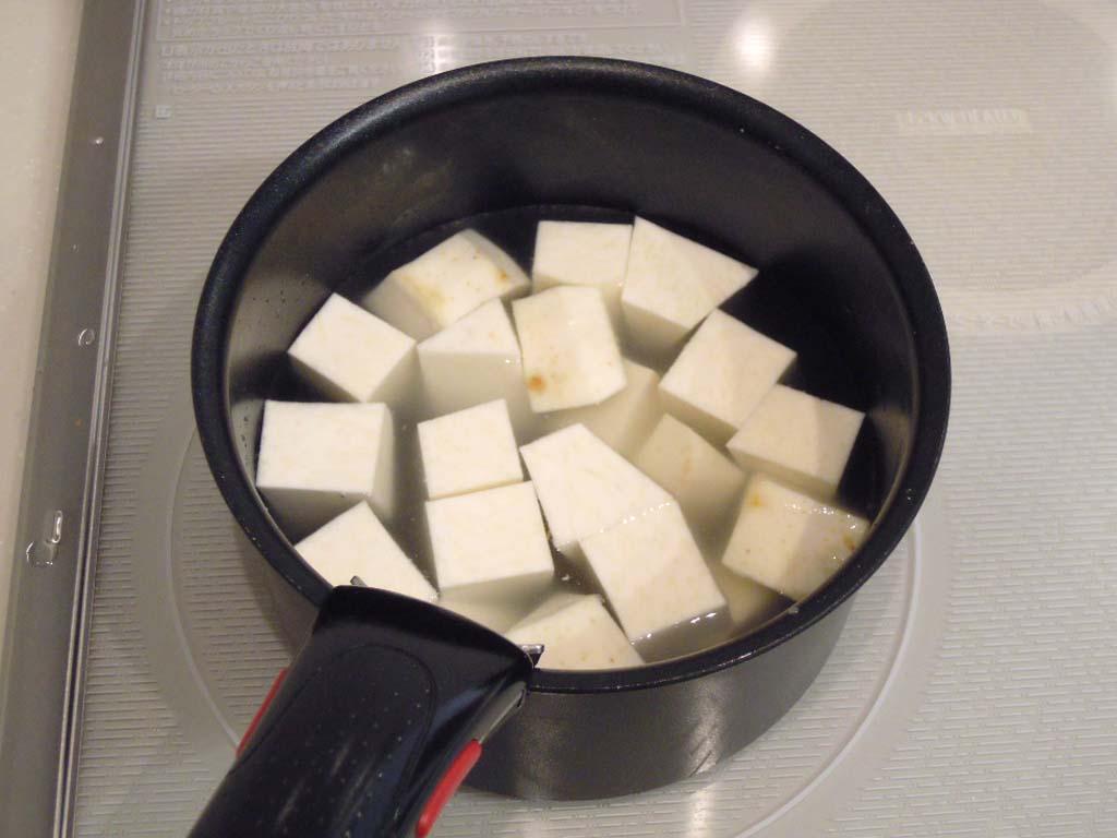鍋に八つ頭、かぶるくらいの水を入れ火にかけ、沸騰したら弱火にして煮る。